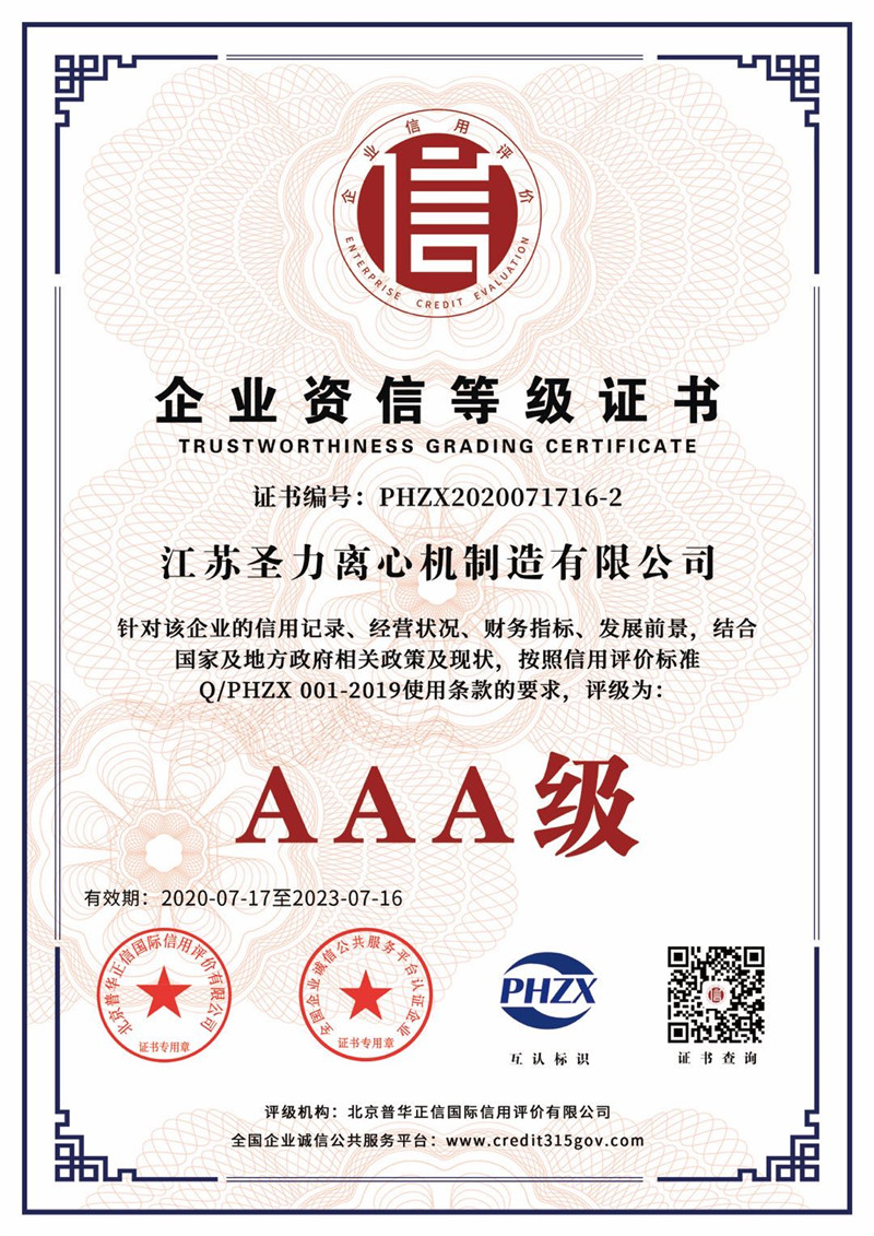 江蘇圣力離心機(jī)制造有限公司是國(guó)內(nèi)分離機(jī)械行業(yè)中主要的離心機(jī)生產(chǎn)企業(yè),對(duì)離心機(jī)的研究、設(shè)計(jì)、制造有多年的歷史,擁有齊全的設(shè)備、完善的檢測(cè)手段。公司已通過(guò)IS09000國(guó)際質(zhì)量體系認(rèn)證、ISO14001環(huán)境管理體系認(rèn)證、ISO45001:2018職業(yè)健康安全管理體系認(rèn)證和CE認(rèn)證,是江蘇省高新技術(shù)企業(yè),曾榮獲國(guó)家和地方多項(xiàng)榮譽(yù)稱號(hào)。